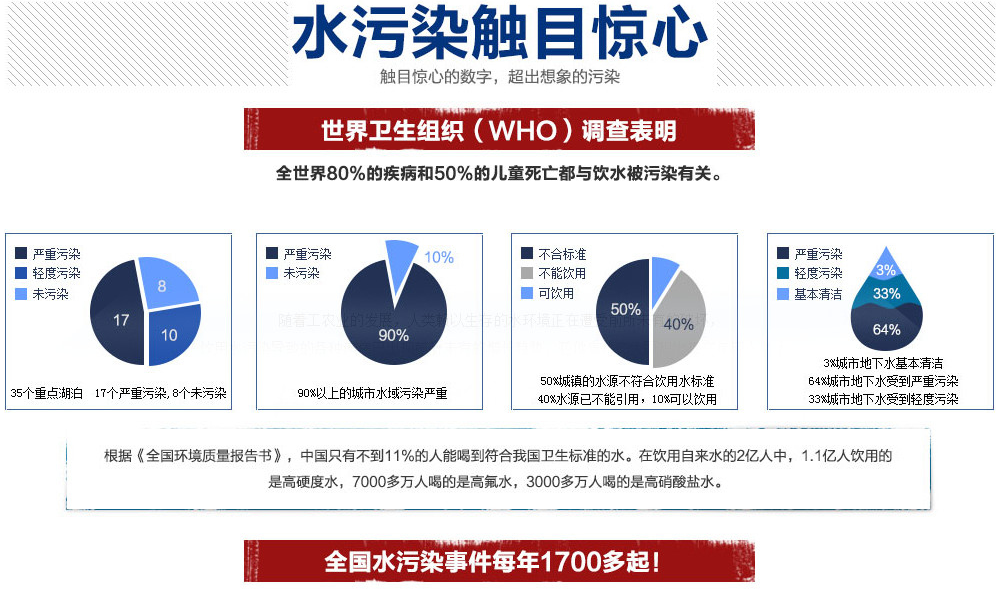 終端銷售凈水器客戶問答:水中的很多污染物是看不見的,象細菌、病毒,現在經濟發展這么迅速,工業廢水的無節制排放、生活垃圾在各個城市的大的填埋場聚集后,會產生很多垃圾滲透液,這些垃圾滲透液現在很多城市沒有處理,直接滲透到城市的地下水中,造成現在的地下水源污染相當嚴重。 我們的自來水又經過漫長的...
